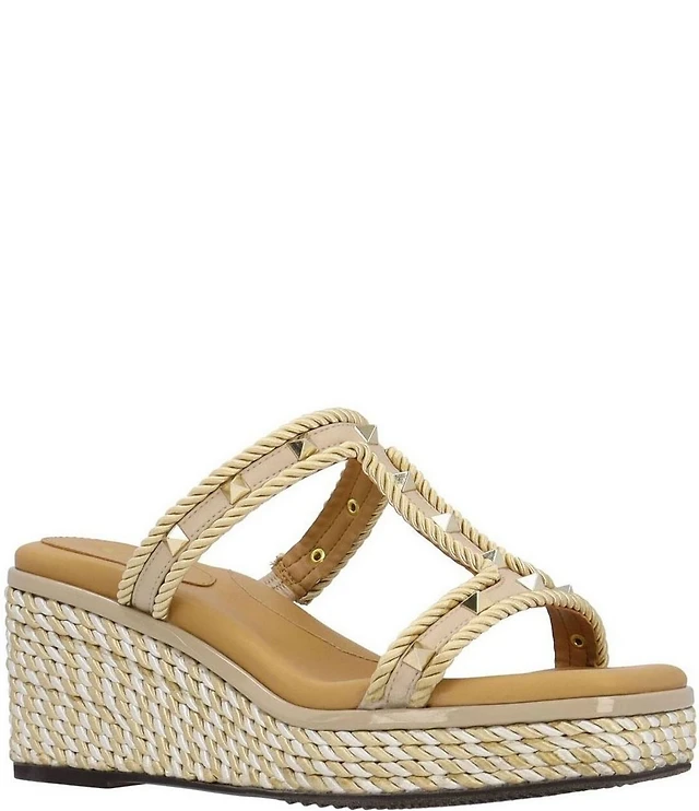 Donald Pliner Gizelle Leather Croco Accent Woven Wedge Buckled Slide Sandals