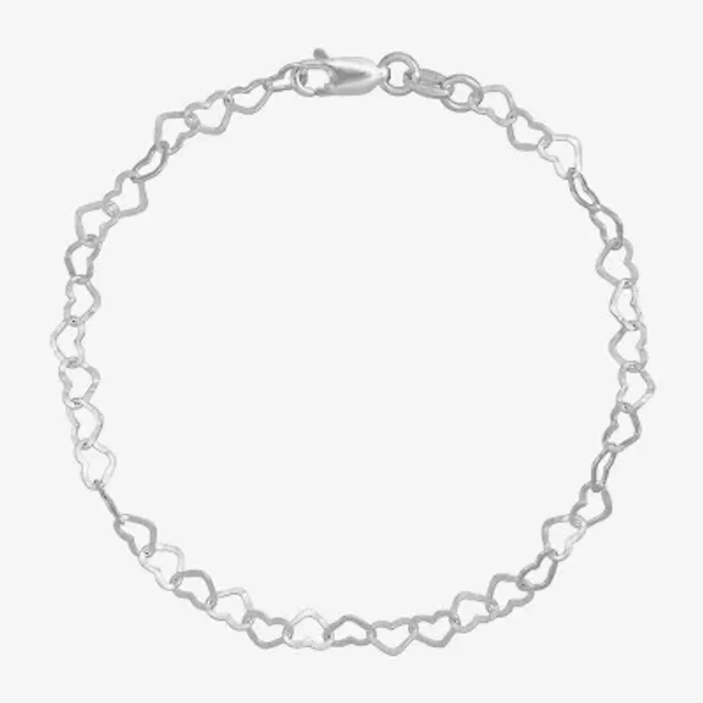Silver Reflections Womens 10 Inch Solid Bead Heart Ankle Bracelet
