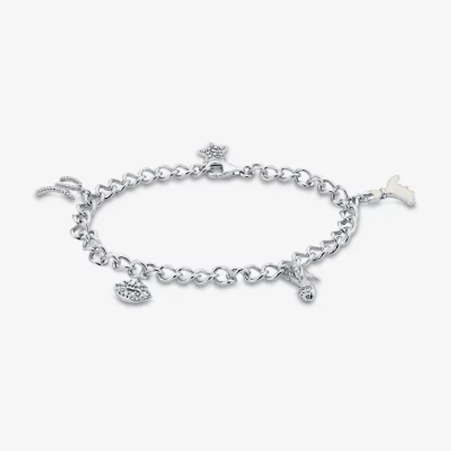 Womens Crystal 10K Gold Over Brass 10K Rose Gold Over Silver Heart Peanuts Snoopy Charm Bracelet