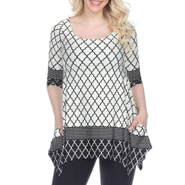 Alfred Dunner Womens Split Crew Neck 3/4 Sleeve Blouse