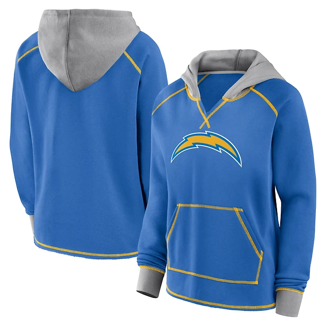 Women's Logo Athletic Powder Blue Los Angeles Chargers Boom Fleece Pullover V-Neck Hoodie