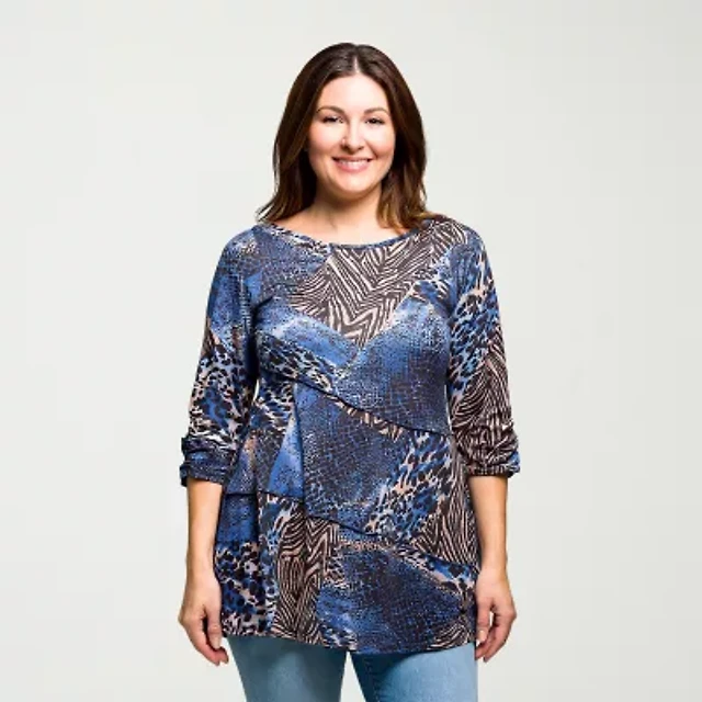 24seven Comfort Apparel Plus Womens Round Neck 3/4 Sleeve Tunic Top