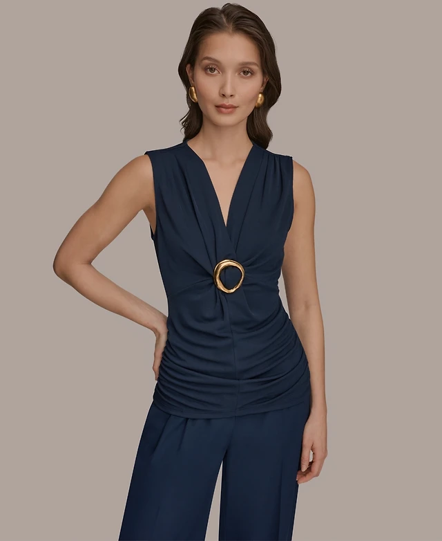 Vince Camuto Women's Floral-Print Split-Neck Cap-Sleeve Top
