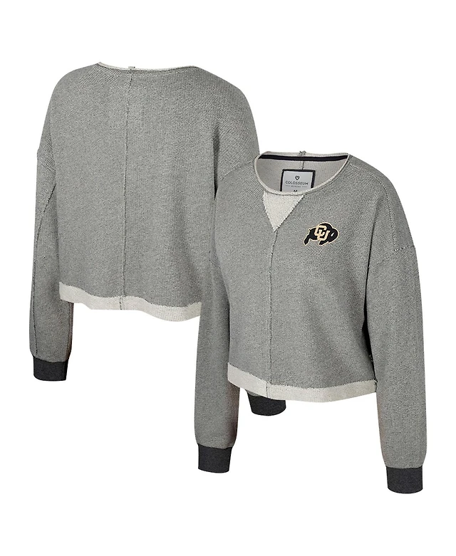 Colosseum Women's Charcoal Colorado Buffaloes Magnum Scoop Neck Cropped Pullover Sweatshirt