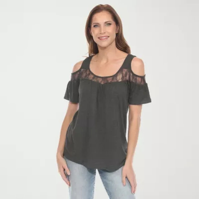 Liz Claiborne Womens Round Neck Short Sleeve Blouse