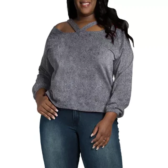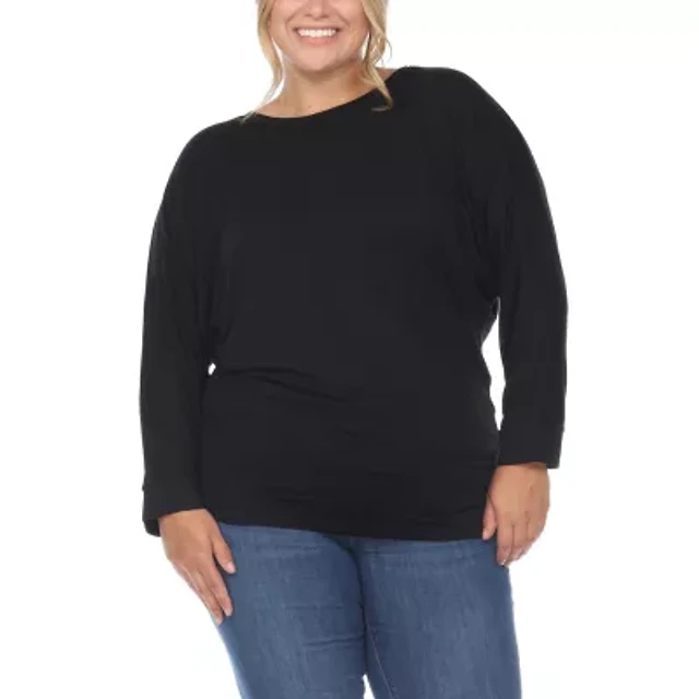 Liz Claiborne Womens Plus Round Neck Long Sleeve Blouse