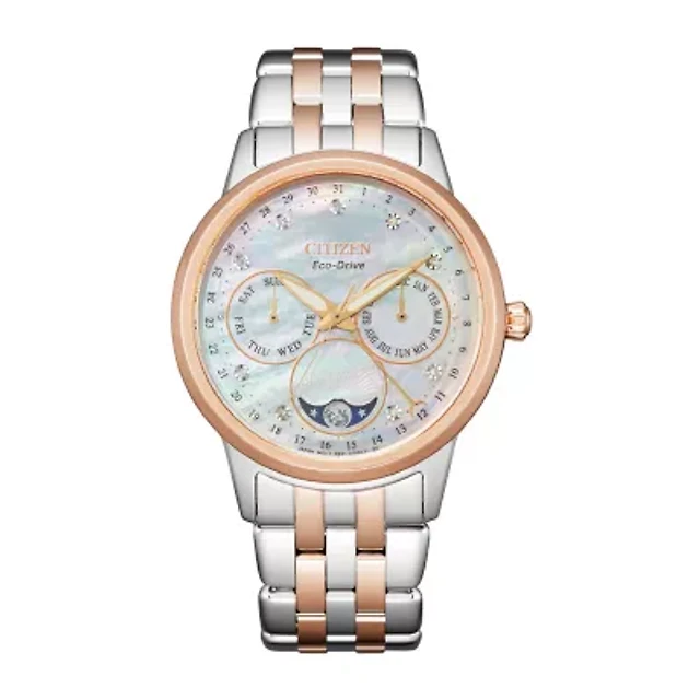 Citizen Calendrier Womens Diamond Accent Two Tone Stainless Steel Bracelet Watch Fd0006-56d