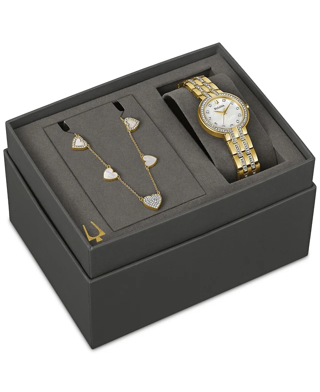 Bulova Women's Automatic Marine Star Diamond Accent Gold-Tone Stainless Steel Bracelet Watch 35mm