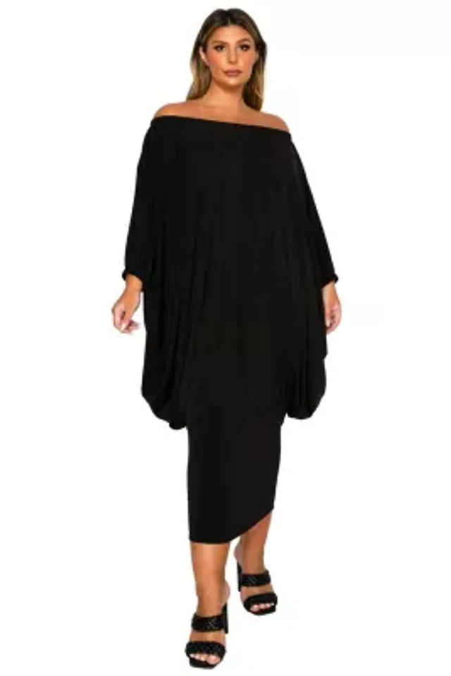 Aidan Mattox Off the Shoulder Lace Knit Crepe Sheath Midi Dress