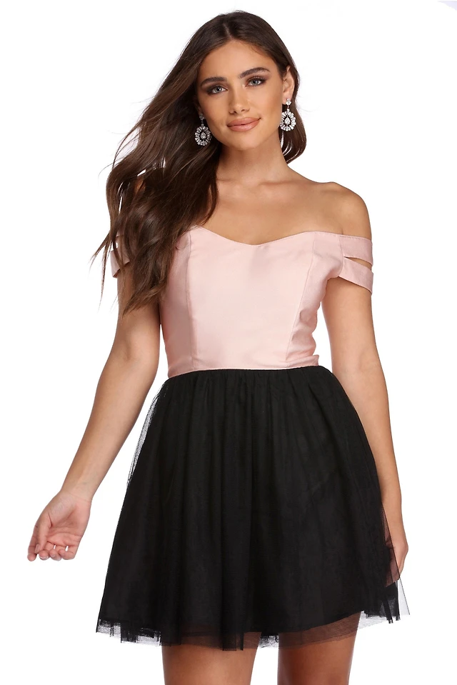 Edikted Ariel Off Shoulder Mesh Mini Dress