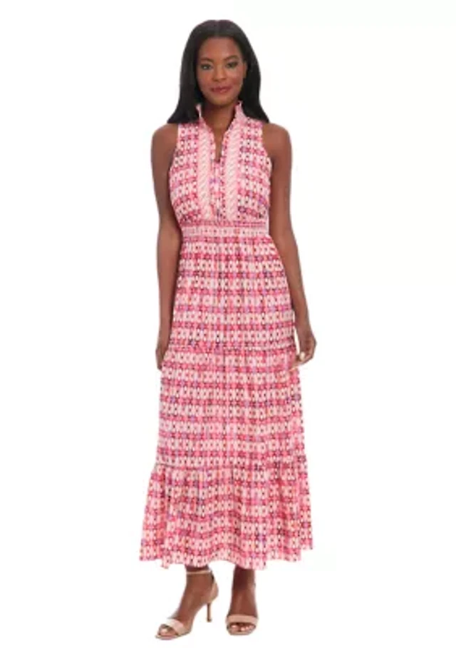 Women's 3/4 Sleeve Belted Tiered Bottom Midi Fit and Flare Dress