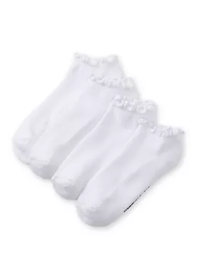 MeMoi Women's Cotton Rich Faux Pearl Trimmed Lettuce Edge Ankle Sock