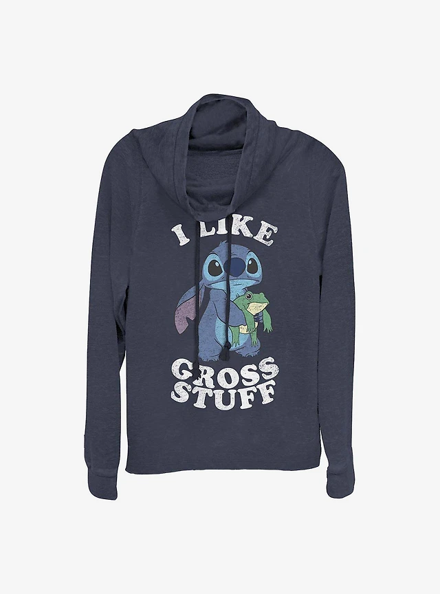 Disney Lilo And Stitch I Like Gross Stuff Cowl Neck Long-Sleeve Womens Top