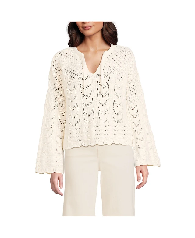 Lands' End Women's Fine Gauge Cotton Jacquard Scoop Neck Sweater