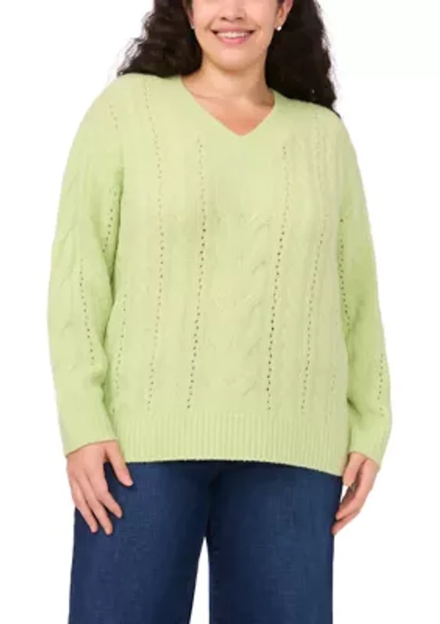 Alfred Dunner Plus Womens Crew Neck Long Sleeve Pullover Sweater
