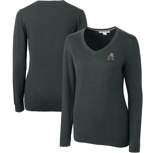 Women's Cutter & Buck Heather Charcoal Cleveland Browns Throwback Logo Lakemont Tri-Blend V-Neck Sweater