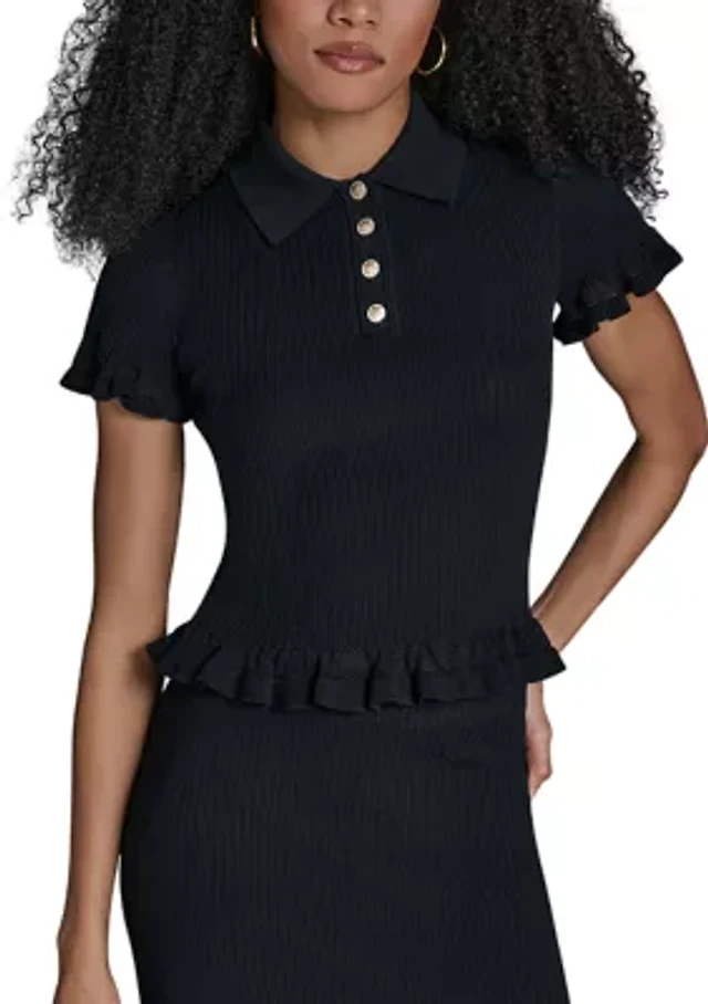 Dkny Women's Ribbed Short-Sleeve Sweater