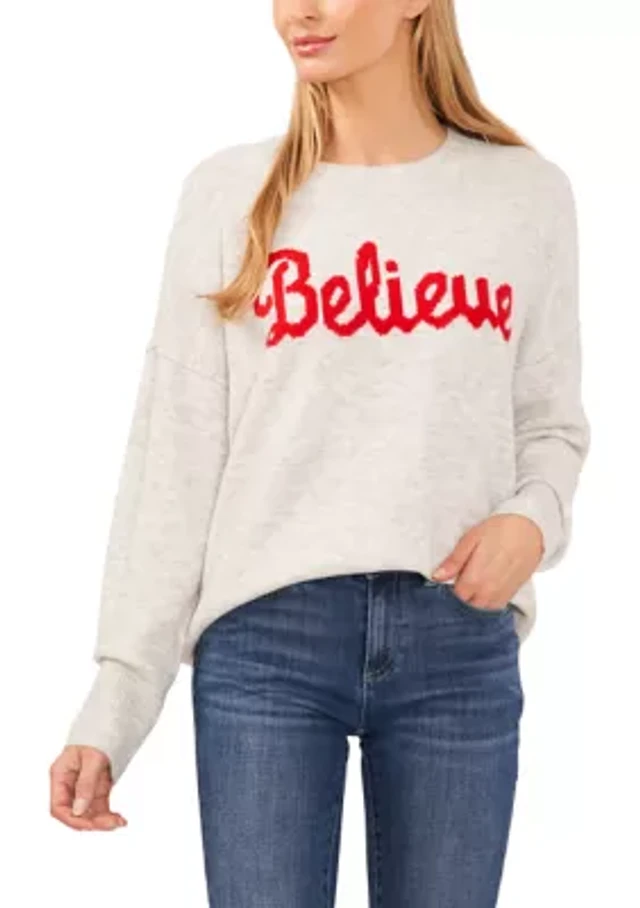 CeCe Women's Long-Sleeve Cheers Script Sweater