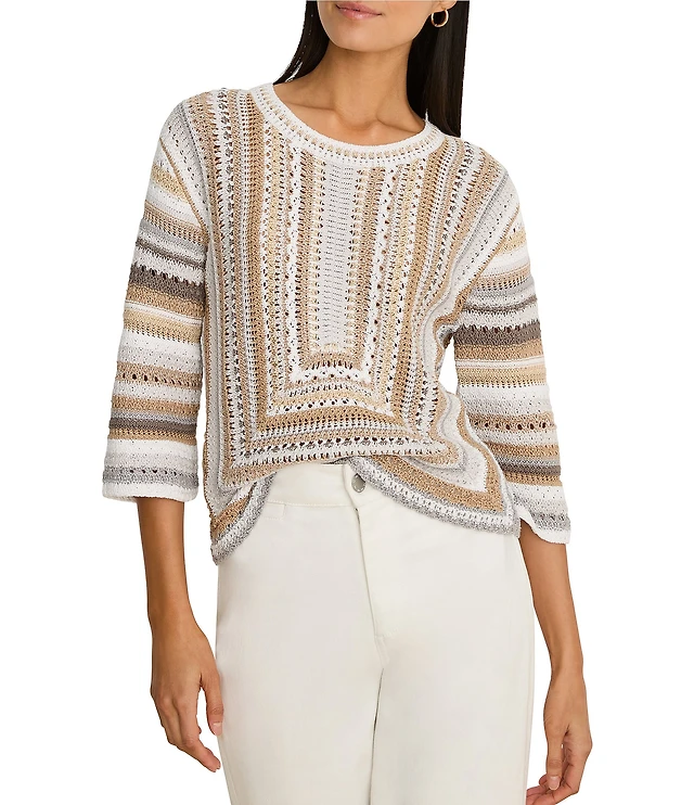 Petite Belting-Motif Short-Sleeve Sweater