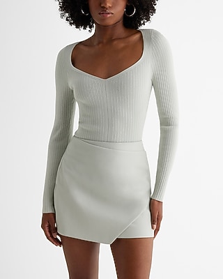Fitted Ribbed Sweetheart Neckline Sweater