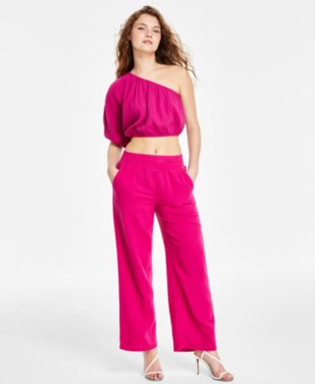 Dkny Jeans Womens One Shoulder Cropped Top High Rise Gauze Straight Leg Pants