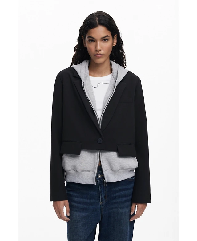 Women's Plus Plaid Wrap Blazer with Tencel Trim
