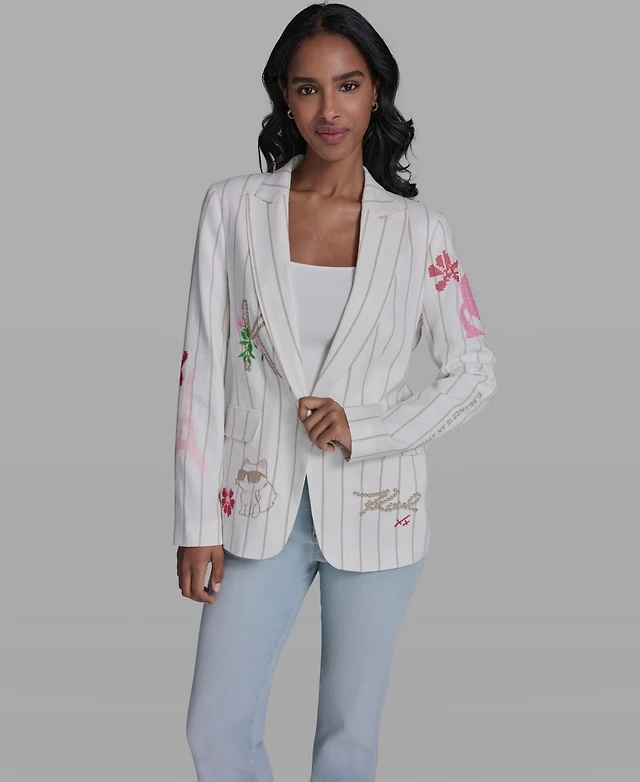 Karl Lagerfeld Paris Women's Striped Collar Blazer