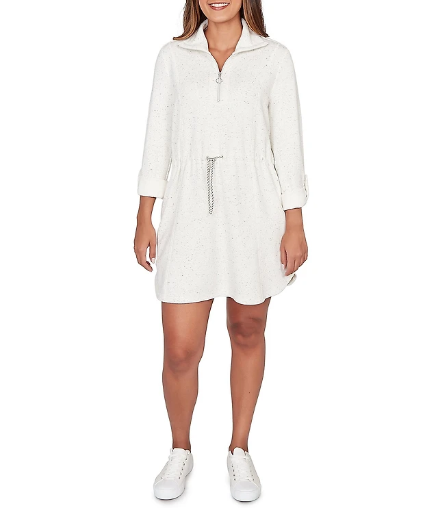 Ruby Rd. Plus Size Soft Speckled Knit Drawstring Waist Quarter-Zip Dress