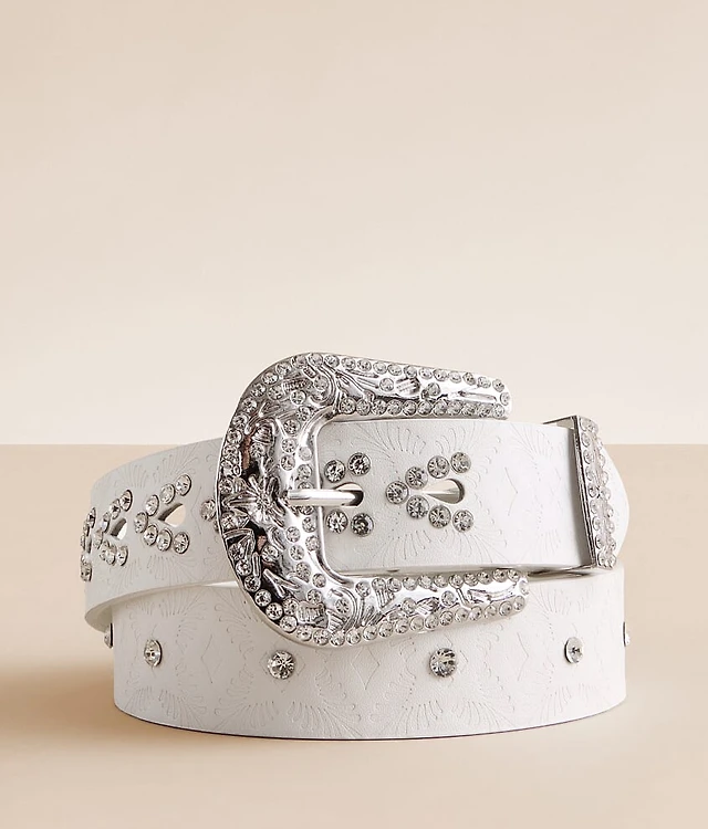 Steve Madden Women's Rhinestone Floral Buckle Belt