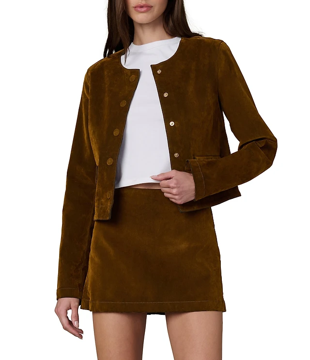 Azalea Wang Ethel Solid Pearl Accent Stand Collar Zip Front Cropped Jacket