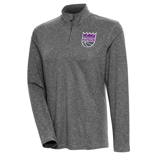 Women's Antigua Heather Gray New York Knicks Confront Quarter-Zip Pullover Top