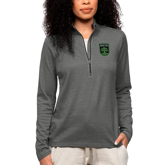 Women's Antigua Heather Charcoal Minnesota Wild Primary Logo Epic Quarter-Zip Pullover Top