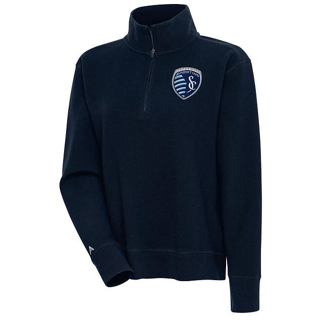 Women's Antigua Heather Navy Indiana Pacers Brushed Metallic Comfort Quarter-Zip Pullover Top