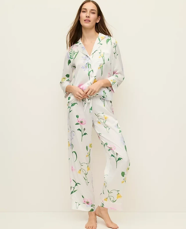 Ann Taylor Floral Satin Pajama Set Winter White Do Not Use Women's