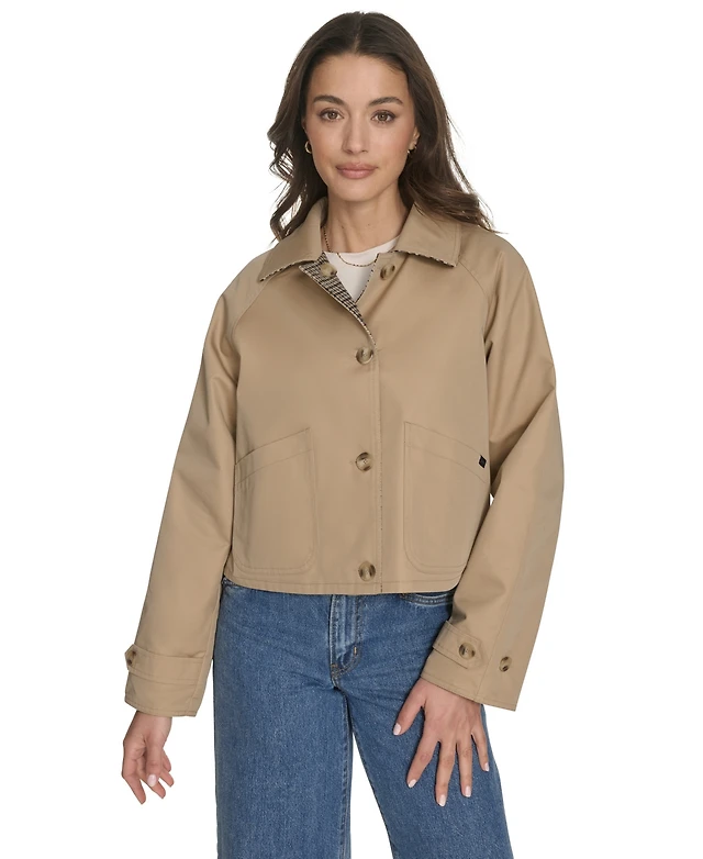 Kensie Women's Cinched Waist Quilted Jacket with Faux Fur Collar