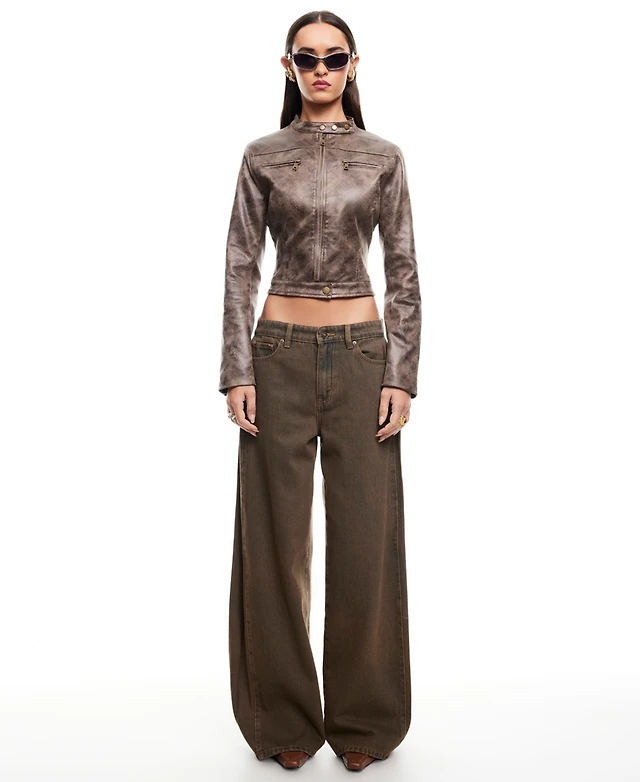 Miss Circle Women's Ziah Cropped Leather Jacket with Fur Collar