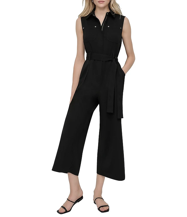 C&V Chelsea & Violet Square Neck Sleeveless Washed Twill Shortall
