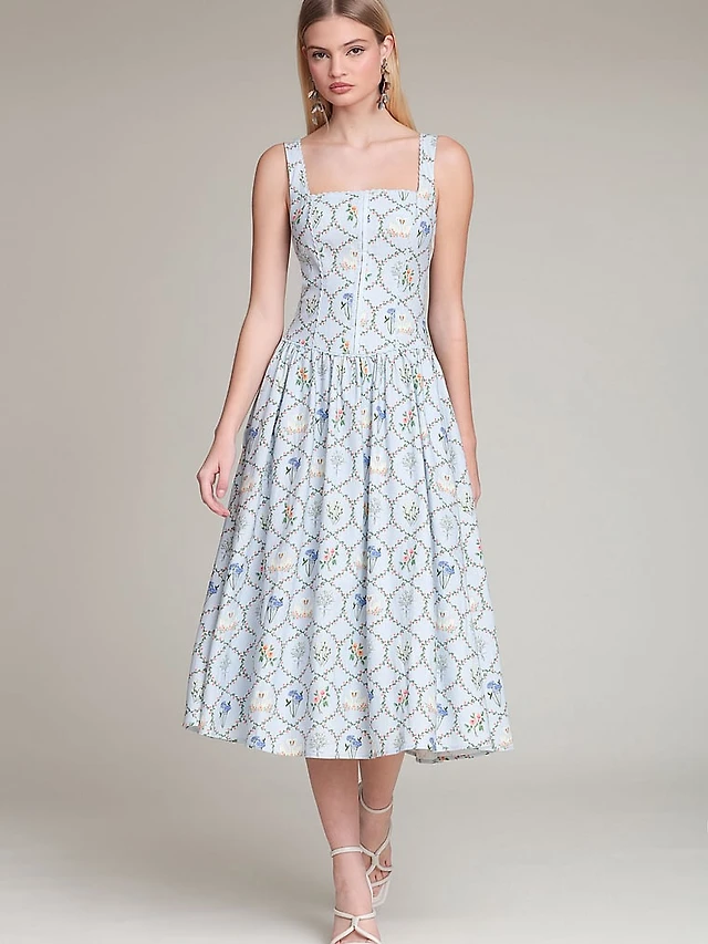 Floral Retreat Chiffon Sweetheart Midi Dress