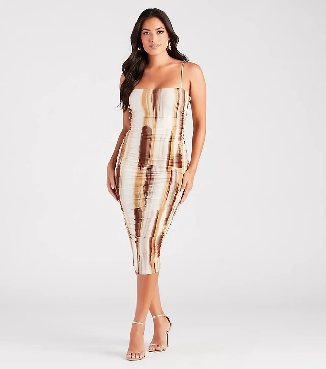 B. Darlin Satin Cowl Neck Drawstring Side Slit Midi Dress
