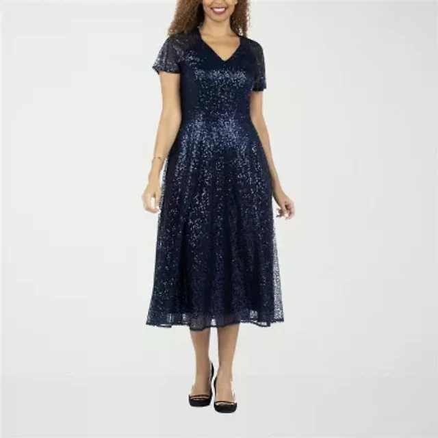 Liz Claiborne Womens Short Sleeve Midi A-Line Dress