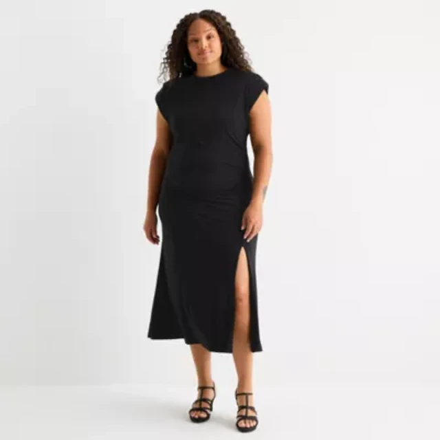 Vince Camuto Plus Size Knit Boat Neck Cap Sleeve Midi Sheath Dress