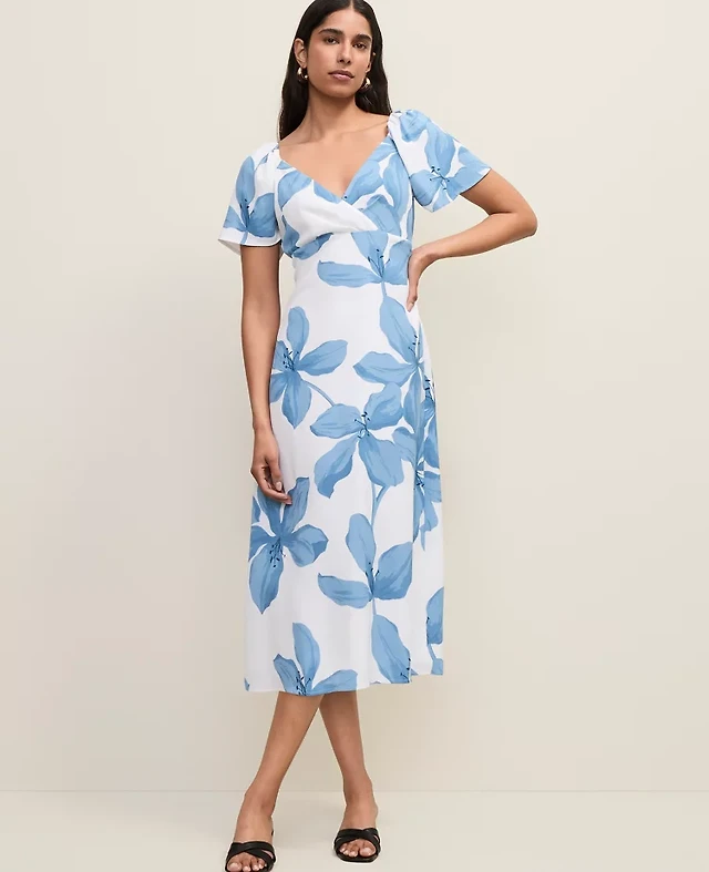 Ann Taylor Paisley Pleated Flare Midi Dress Moonlit Backdrop Women's