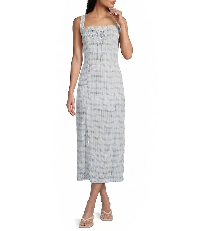 Perch by Blu Pepper Plus Square Neckline Short Sleeve Bow Detail Chambray Midi Dress
