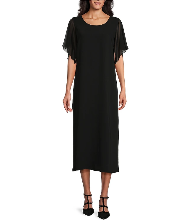 Ming Wang Plus Bold Floral Jacquard Knit Crew Neck Short Sleeve Sheath Midi Dress