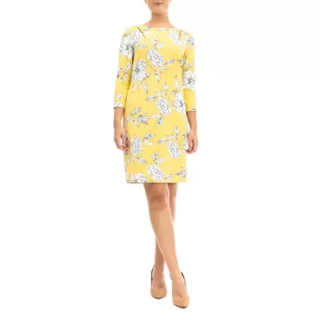 JS Collections Primrose Floral Stretch Jacquard Asymmetrical Sheath Midi Dress