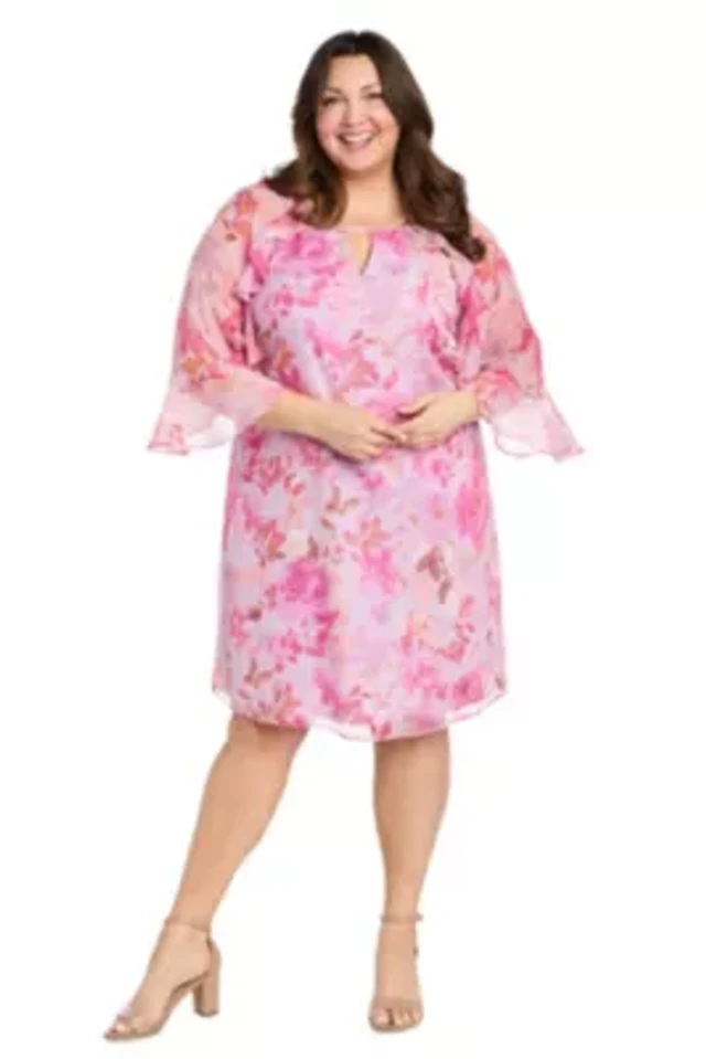 Jude Connally Katie Brushed Jude Cloth Mod Party Peony Print Split V-Neck 3/4 Sleeve Midi Dress