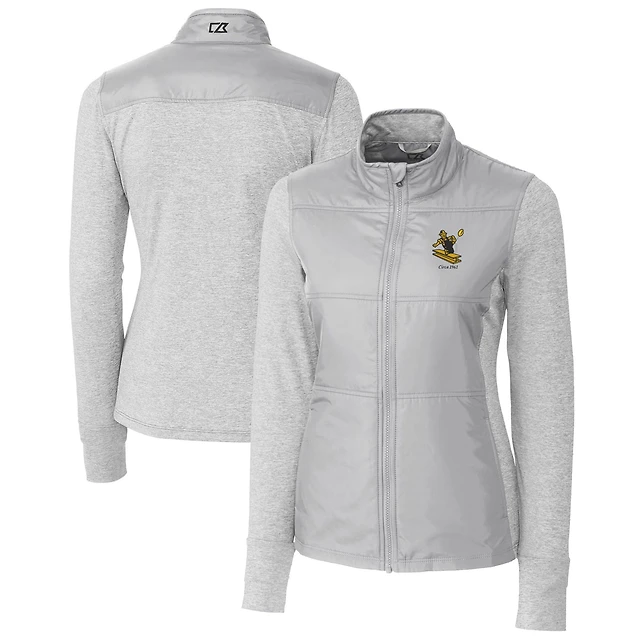 Women's Cutter & Buck Gray New York Giants Throwback Logo Stealth Hybrid Quilted Full-Zip Windbreaker Jacket