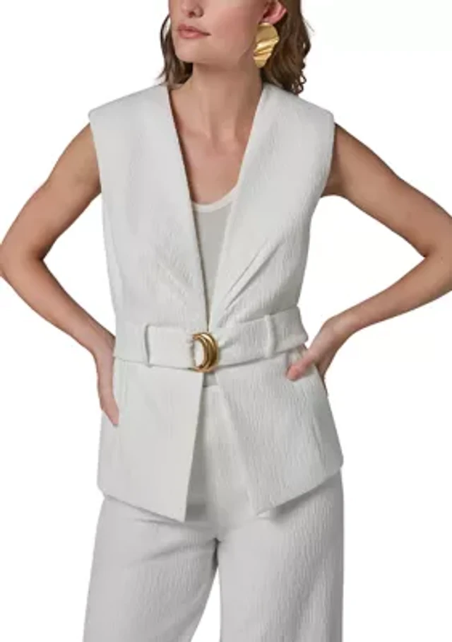 Ivonne Women's Single-Breasted Linen Vest with Waist Tie