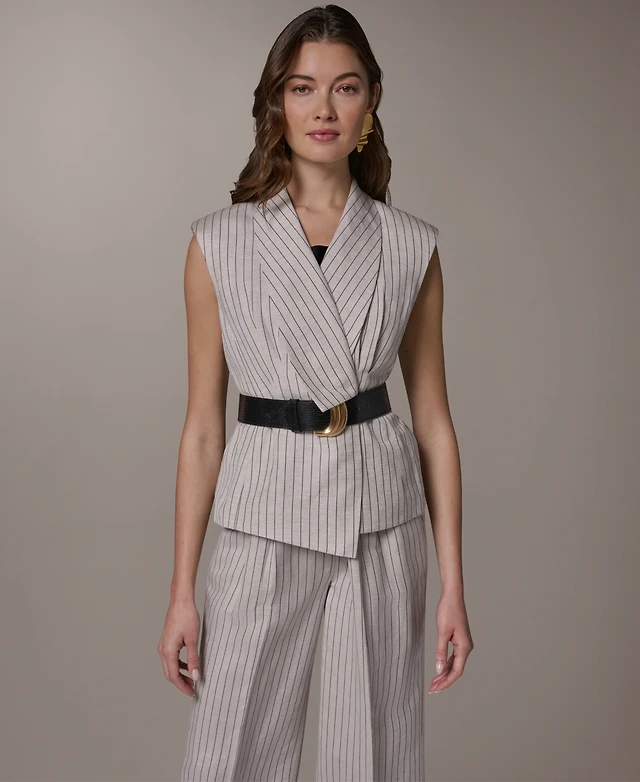 Donna Karan New York Women's Sleeveless Pinstripe Belted Vest
