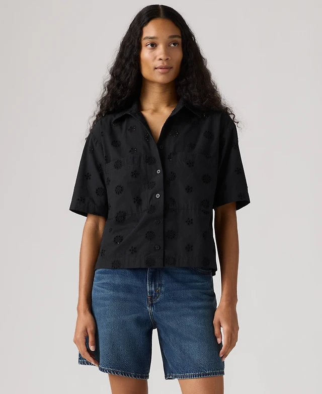 CeCe Women's Short-Sleeve Collared Button-Down Shirt